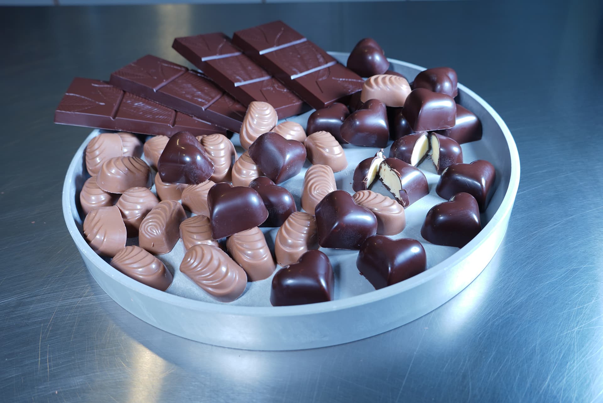 Vi arbejder med tre chokolade varianter (mørk-, fløde- og hvid chokolade) samt fremstiller ganache med eller uden alkohol.